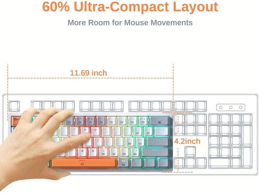 Ultra-Compact Design:61-key layout maximizes gaming space while ensuring peak performance, ideal for FPS gamers.