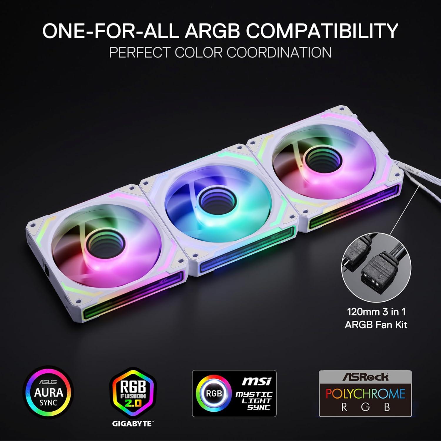 ARGB Compatible – Easily connect to ARGB lighting systems of all major motherboards with the included 5V 3-pin interface, or use an extra controller for customization. Enjoy a stunning central light zone and side strip illumination for a captivating display.