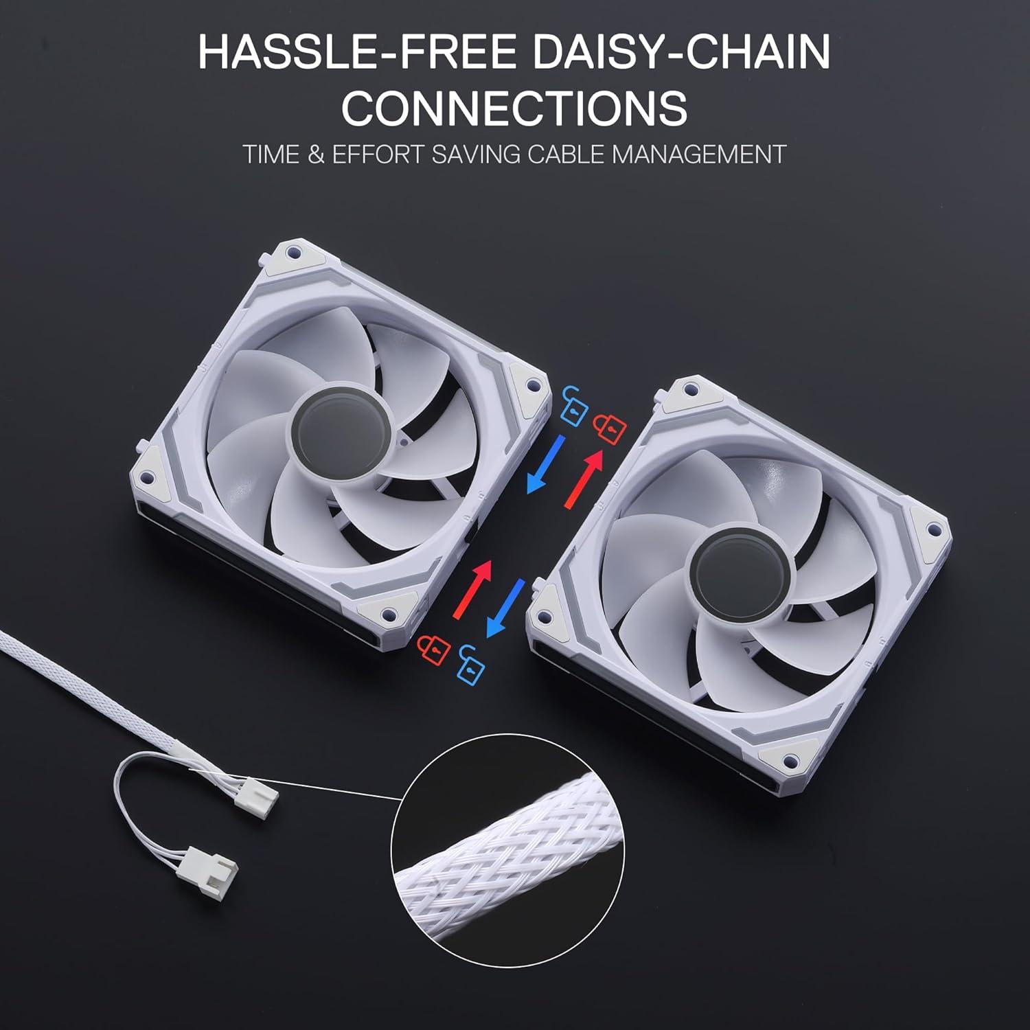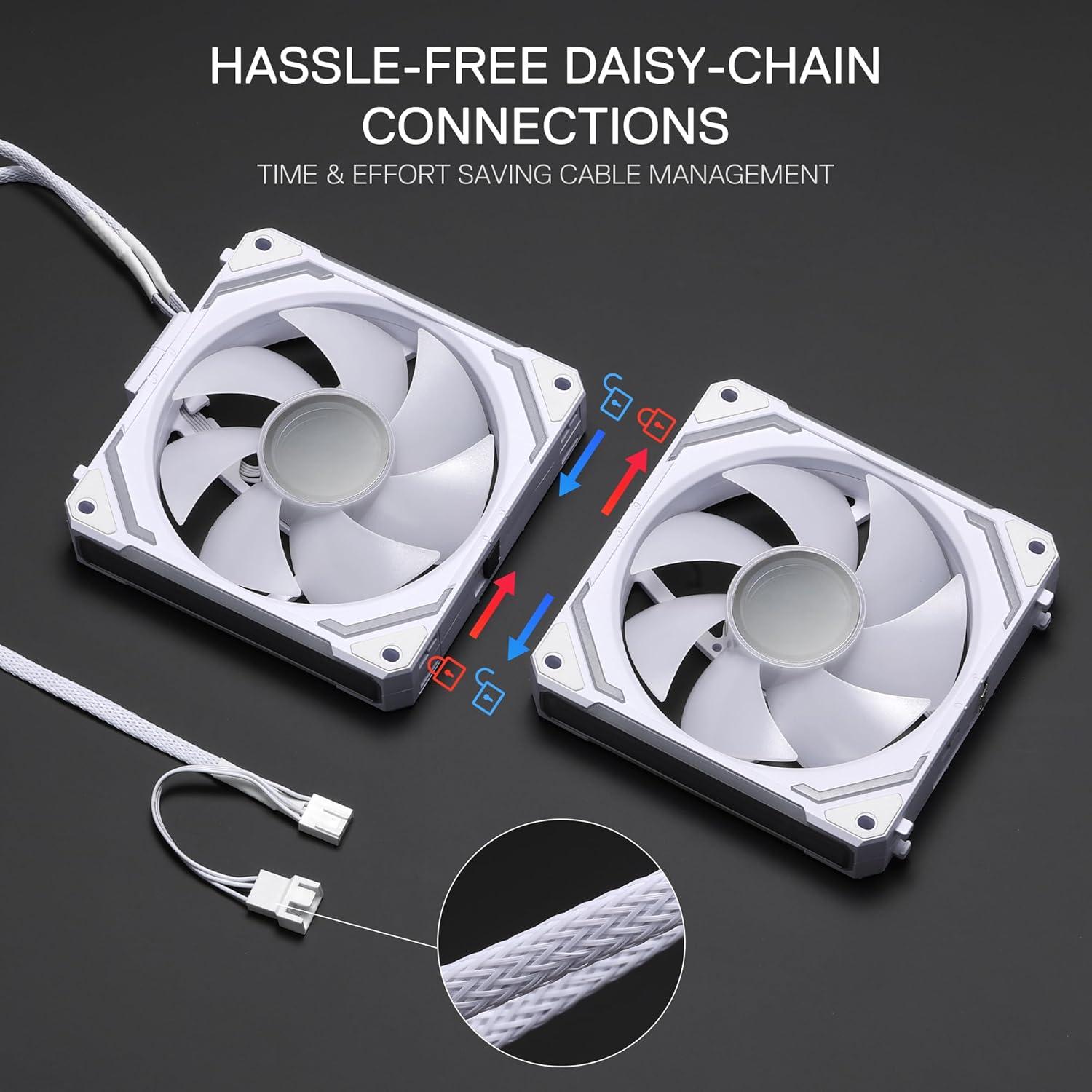 Easy Daisy-Chain Connection: Say goodbye to complicated installations! GCF102 modular snap-on design allows for seamless daisy-chain connections, making setup a breeze. Connect multiple fans effortlessly and enjoy a clutter-free build without hassle.