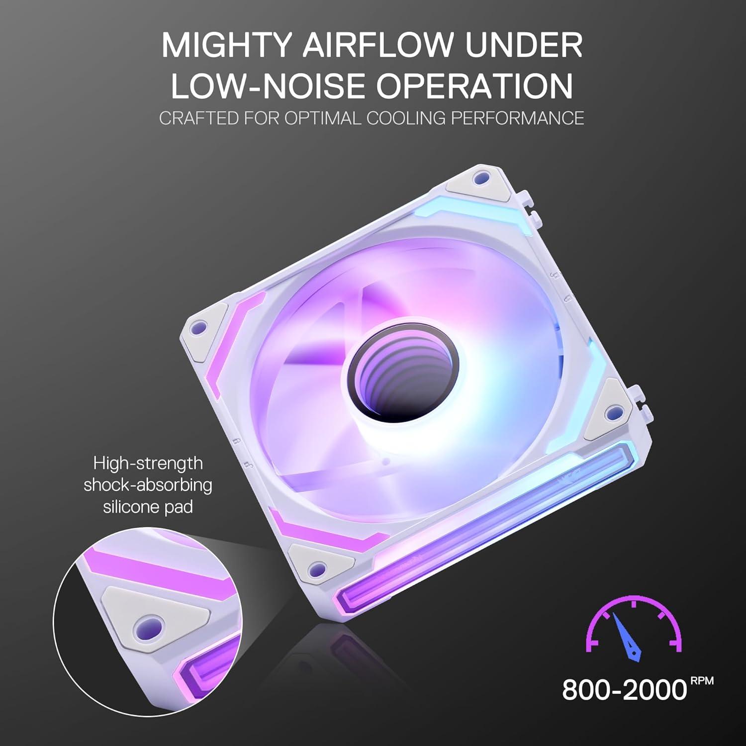 Lightning-Fast Performance: Equipped with a robust 120mm fan, experience rapid spin rates from 800 to 2000 RPM, delivering impressive airflow of up to 68.8 CFM and a static pressure of 2.05 mm H₂O. Keep your gaming rig cool and efficient, even during the most intense gaming sessions!