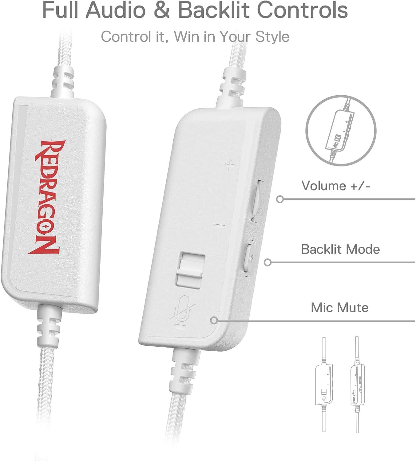 RGB and More In Control – H350 is the first Redragon headset with RGB backlight, dynamic and static RGB backlit modes can be switched easily via audio in-line control, volume adjustment and mic mute are also in control too.