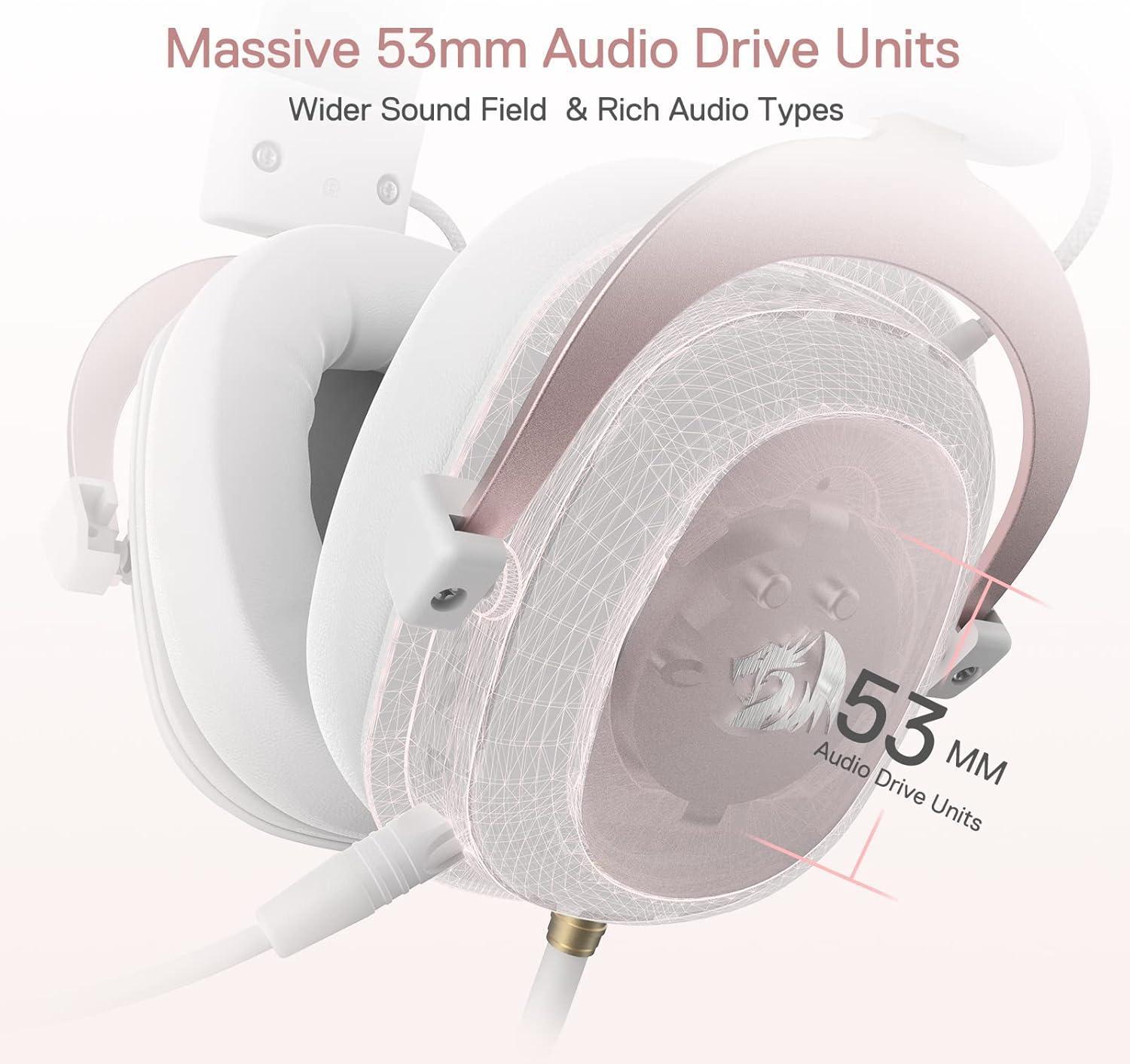 Precisely Clear Audio – Enjoy the real clear and lossless sound quality with 7.1 Surround-Sound technology, creating a field of immersion wherever in game field, listening to alive concert or in a chat room. The 53mm drivers offer a wider frequency range, richer sound fields, higher definition and extreme fidelity sound.