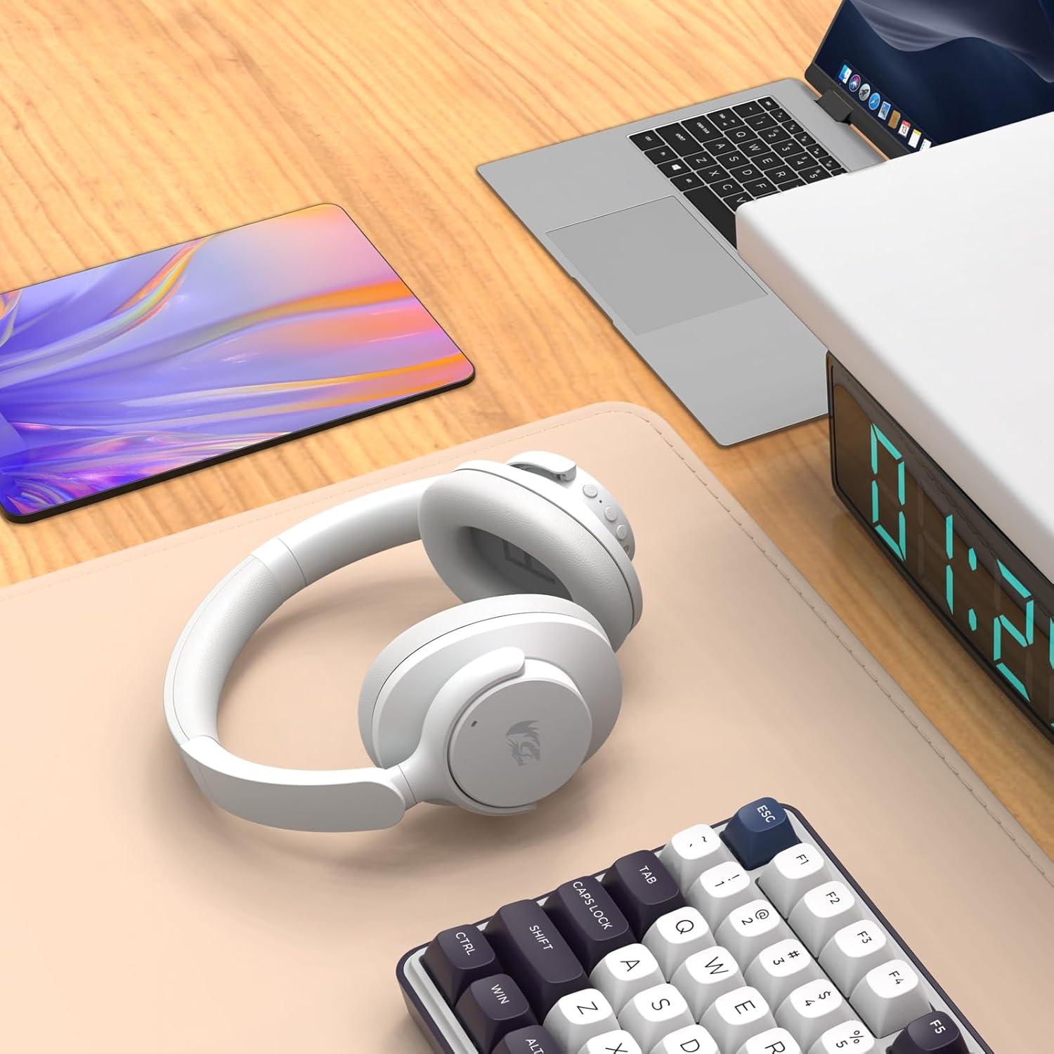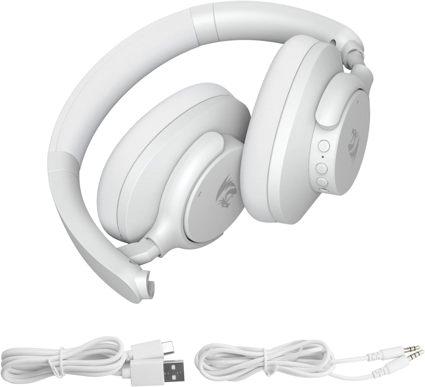 Redragon H610 Wireless Gaming Headset for PC, Mac, NS, Phone – BT 5.3 with ANC Noise Cancellation, 40H Battery, Lightweight, Over-Ear Headphones with Built-in Mic, Black(White)
