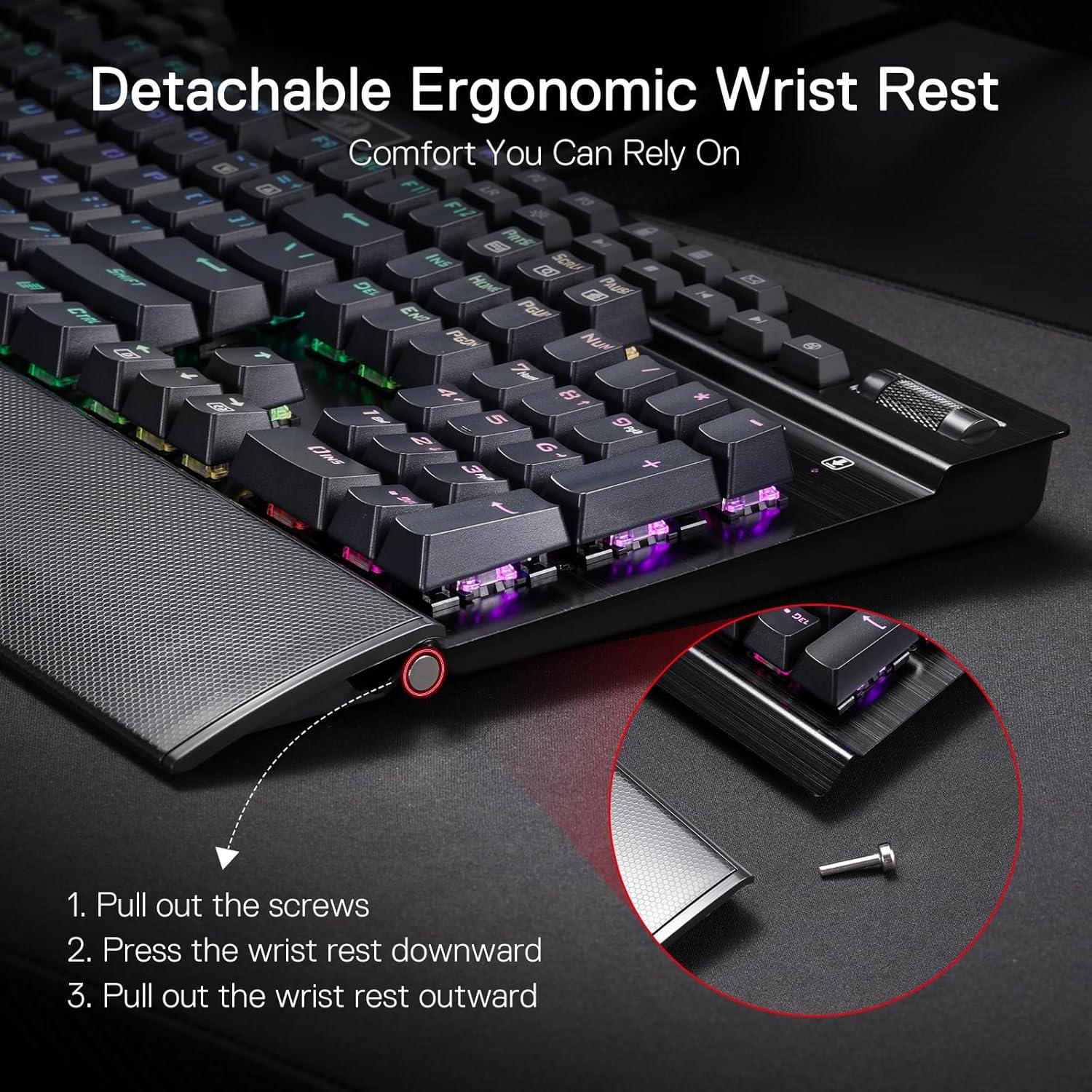 imageRedragon K550 RGB Gaming Keyboard 104 Keys  12 Macro G Keys Wired Mechanical Keyboard wAluminum Top Plate Custom Clicky Purple Switch Extra USB Port ampamp Wrist RestBlack