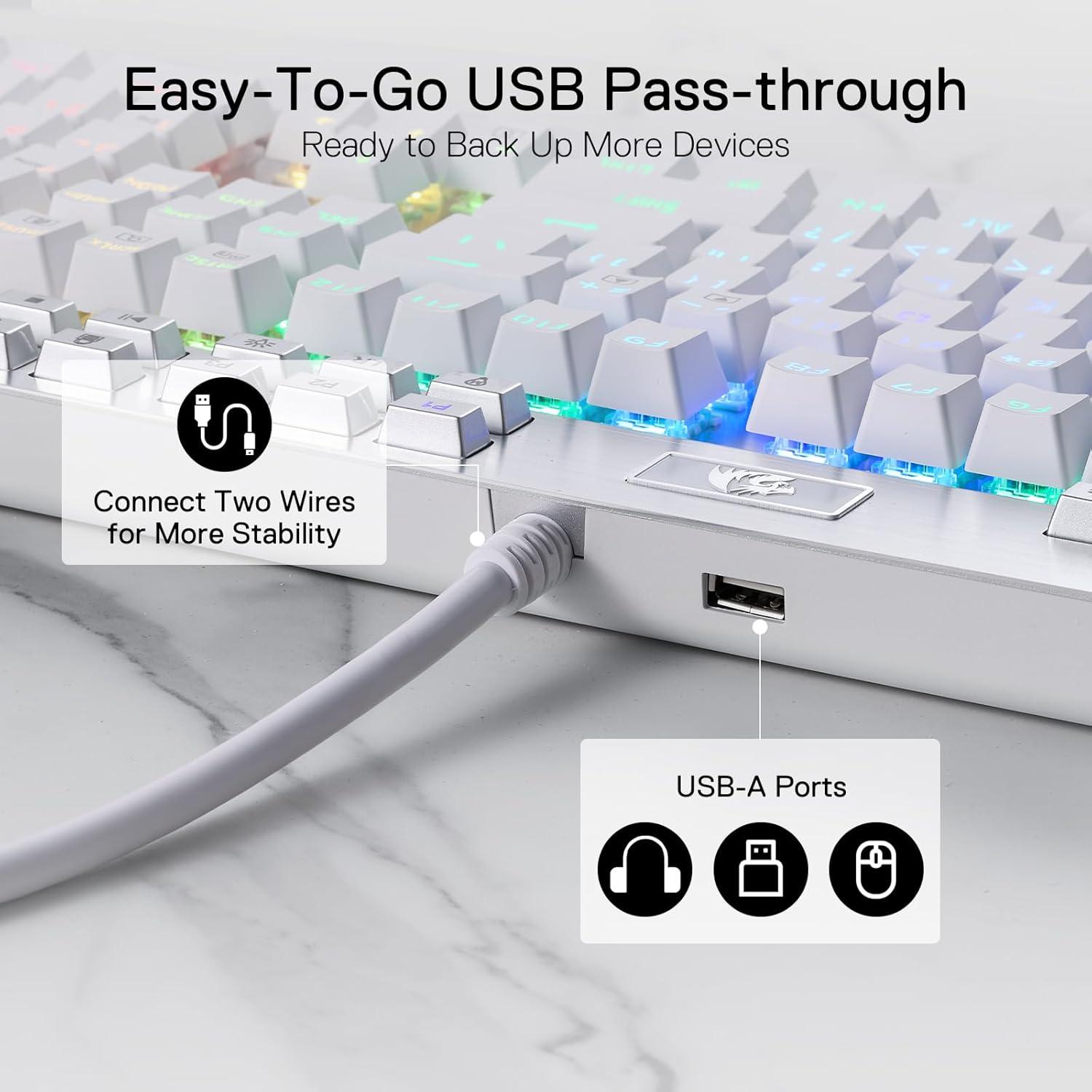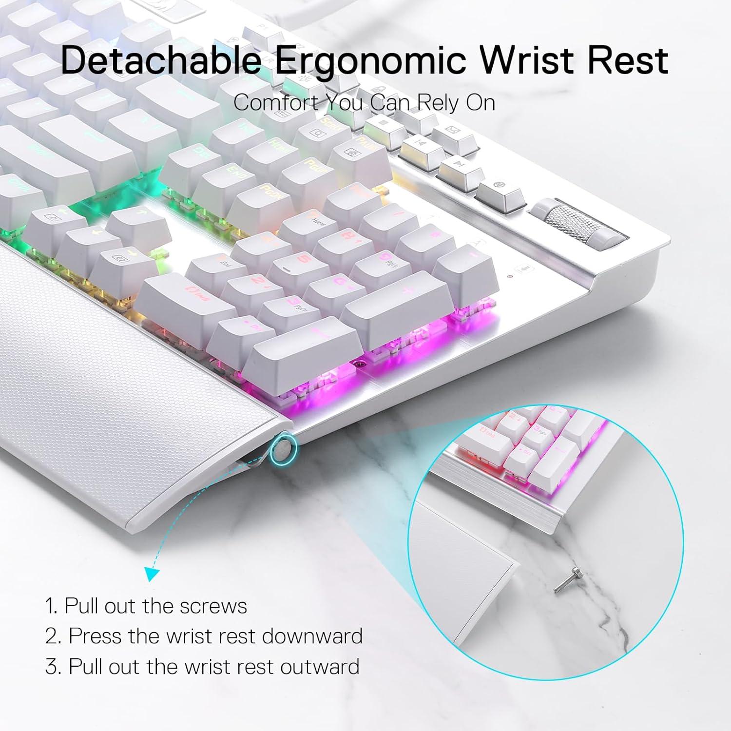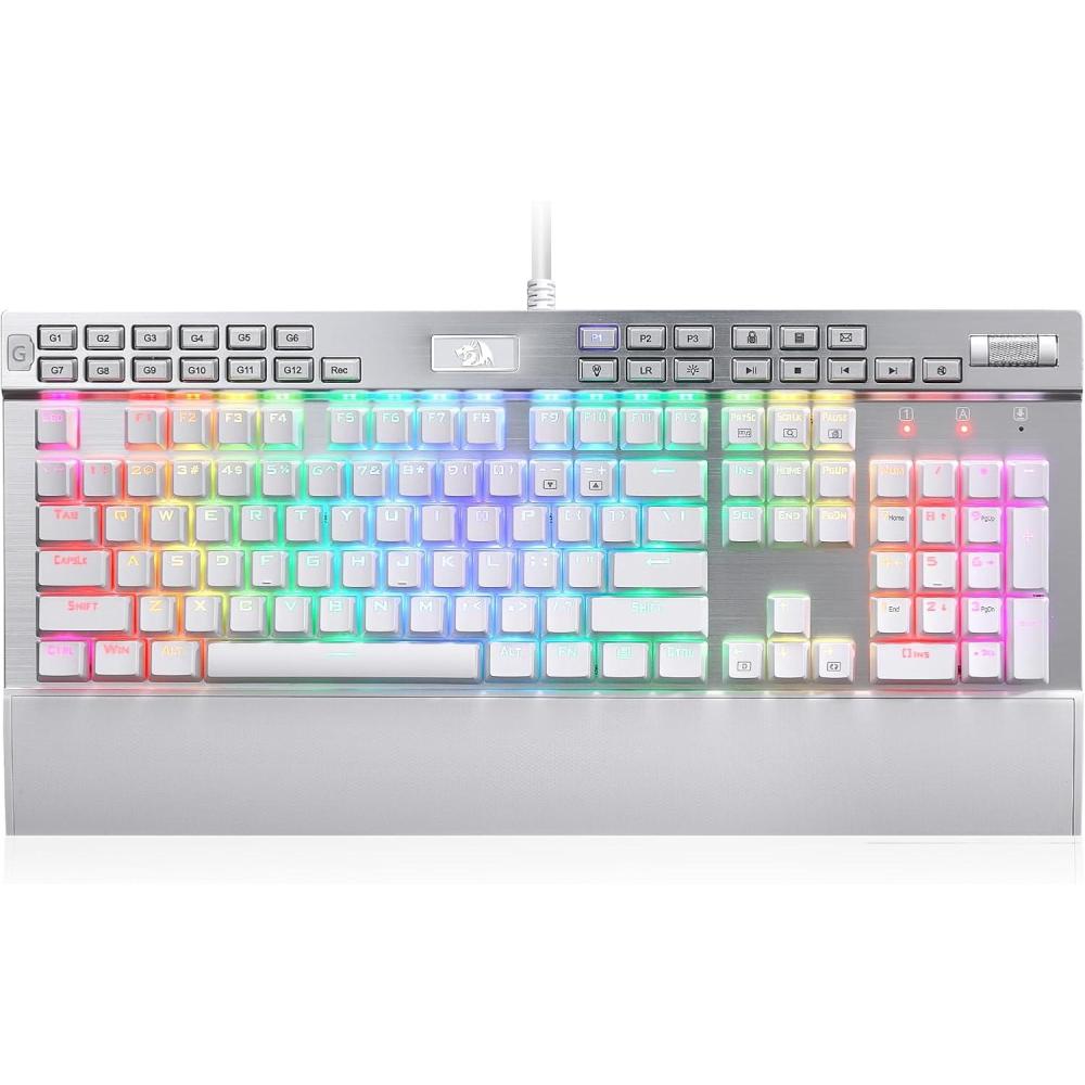 Redragon K550 RGB Gaming Keyboard, 104 Keys + 12 Macro G Keys Wired Mechanical Keyboard w/Aluminum Top Plate, Custom Clicky Purple Switch, Extra USB Port & Wrist Rest(White)