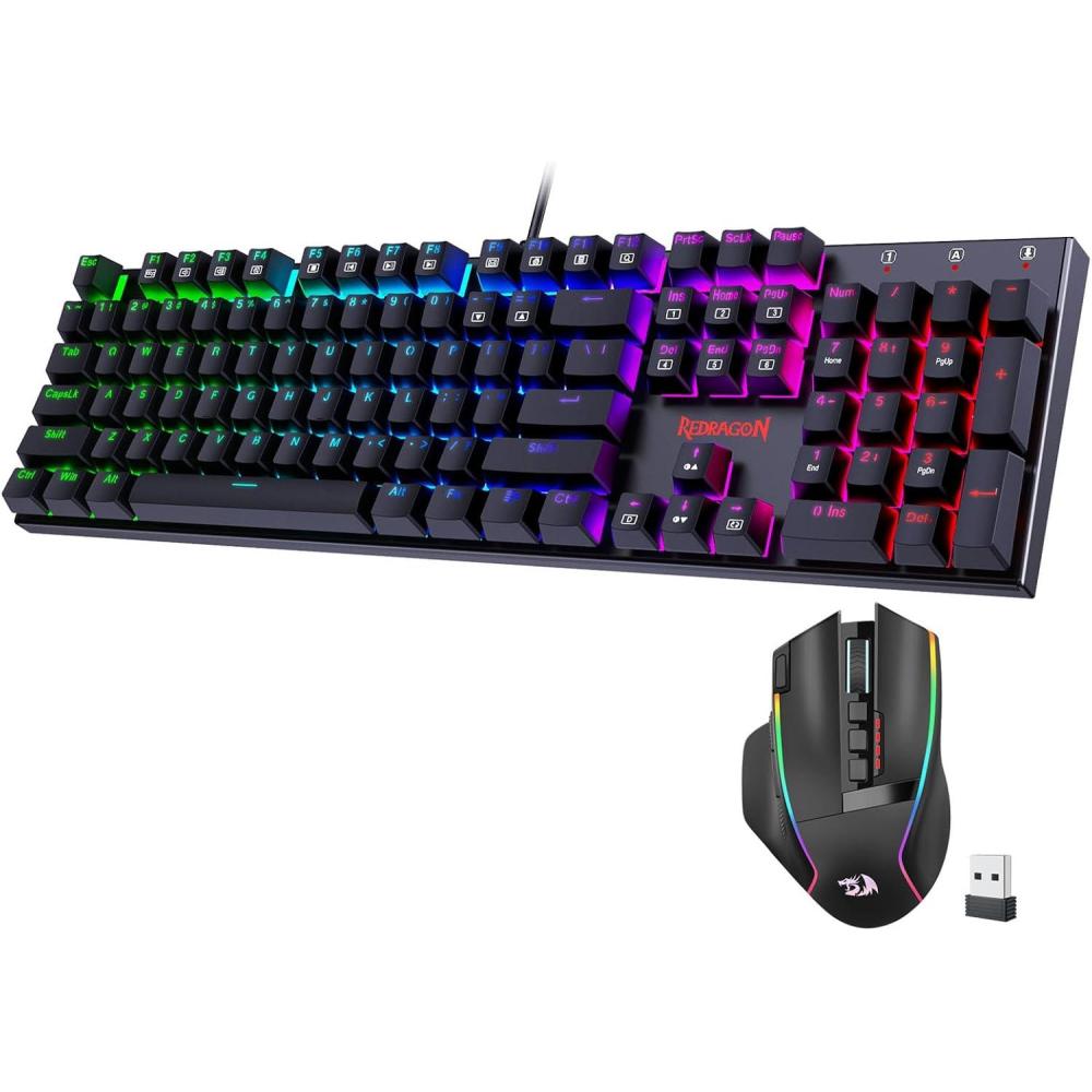 Redragon RGB Gaming Mouse & Gaming Keyboard Combo, 3200 DPI, Programmable Keys, 104 Keys, Mechanical Keyboard, 7 Colors, 6 RGB Effects, Anti-Ghosting, Ergonomic Design