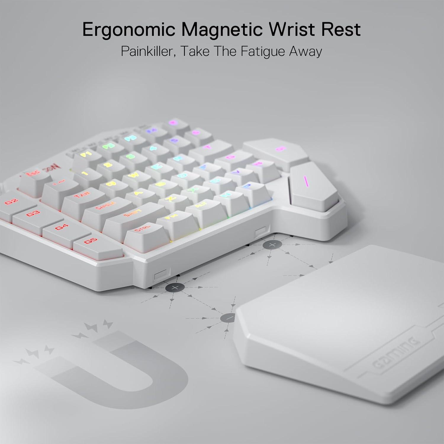 Upgraded Hot-Swap – The upgraded socket is now available on Redragon one-handed keyboard, with more ways to mod, and more fun. The iconic Redragon Blue Switches deliver audible clicky with clear tactile feedback, original mechanical feel.