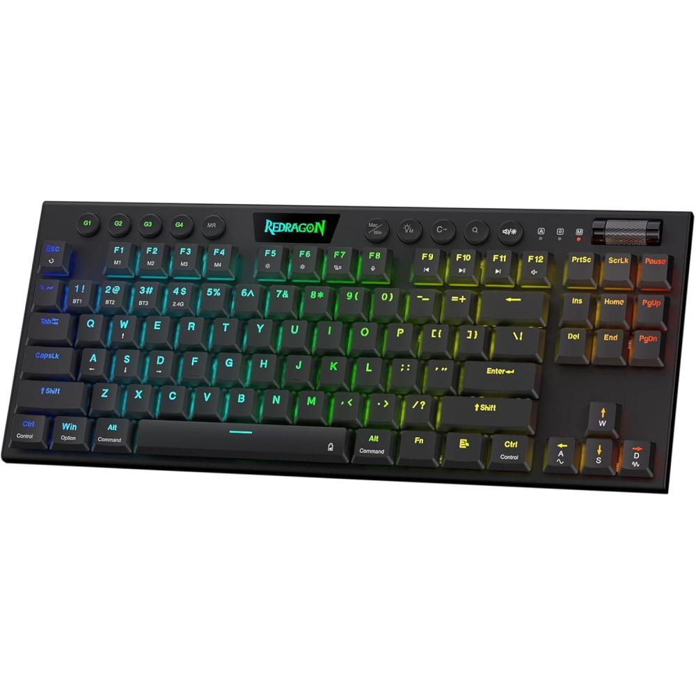 3-Mode Connection: Here comes Redragon innovative 1st-Gen 3-mode connection technology, USB-C wired, BT 3.0/5.0 & 2.4Ghz wireless modes which make the user experience upgraded to another level in all fields.