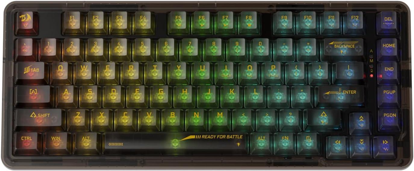 Redragon K649 PRO 78% Wireless Gasket RGB Gaming Keyboard, 3-Modes 82 Keys Full-Transparent Mechanical Keyboard w/Hot-Swap Socket, Noise Dampening Layer x 5, Translucent Custom Switch(Black Transparent)
