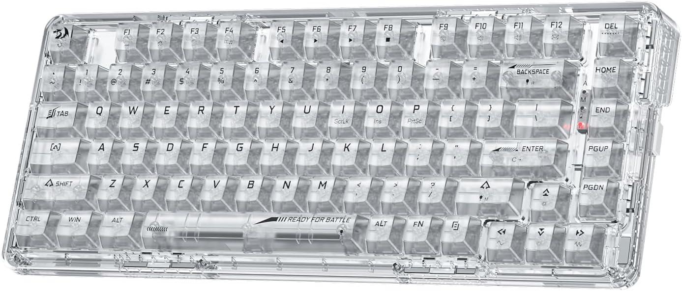 Redragon K649 PRO 78% Wireless Gasket RGB Gaming Keyboard, 3-Modes 82 Keys Full-Transparent Mechanical Keyboard w/Hot-Swap Socket, Noise Dampening Layer x 5, Translucent Custom Switch(White Transparent)