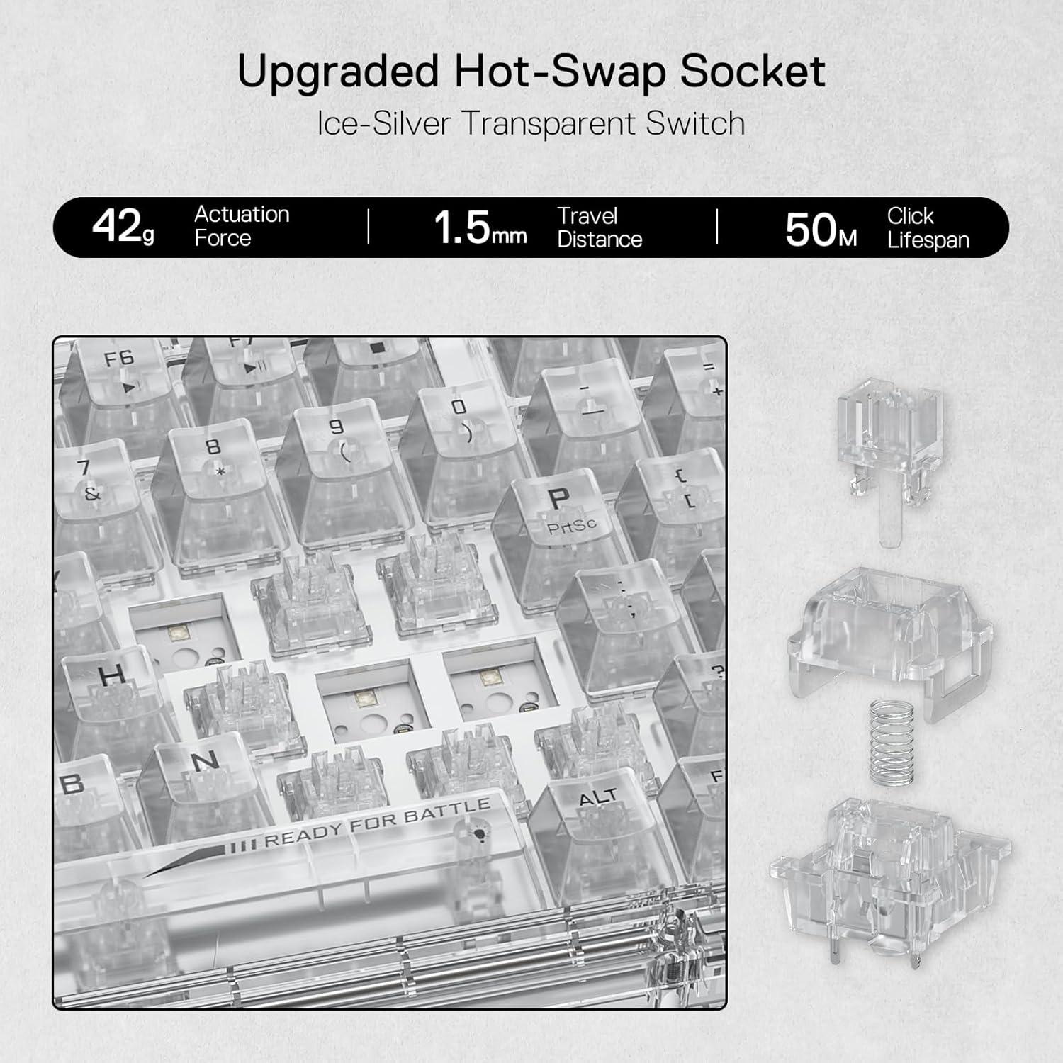 UPGRADED HOT-SWAP – The brand new upgrade with nearly all switches(3/5 pins) compatible, the free-mod hot-swappable socket is available now. The exclusive next-level socket makes the switch mounting easier and more stable than ever.
