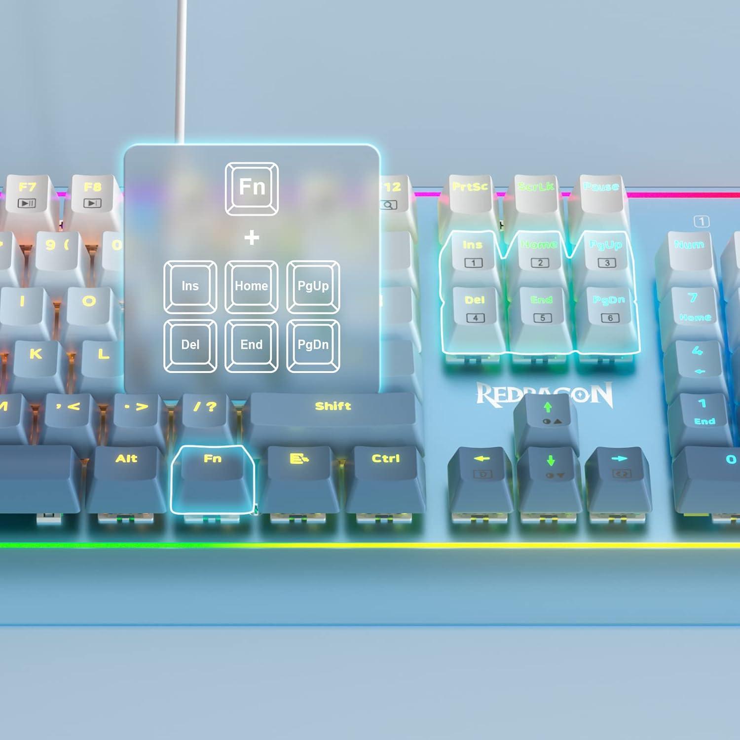 imageRedragon K654 RGB Gaming Keyboard 104 Keys Wired Mechanical Keyboard wWeighted Aluminum Frame 35mm Sound Absorbing Foams Upgraded Hotswappable Socket Mixed Color Keycaps Bluemade