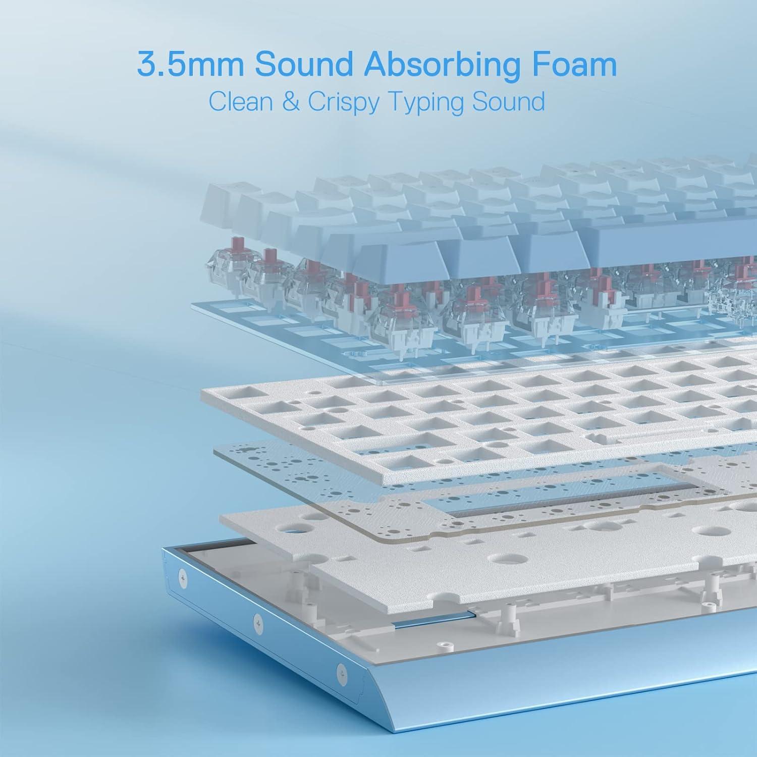 Sound-absorbing Foam – Adding 3.5MM sound-absorbing foam between the PCB and positioning plate effectively reduces the noise created by the shrapnel spring, significantly improving the keyboard's sound performance, and delivering pure auditory pleasure and the ultimate smooth typing & gaming experience.