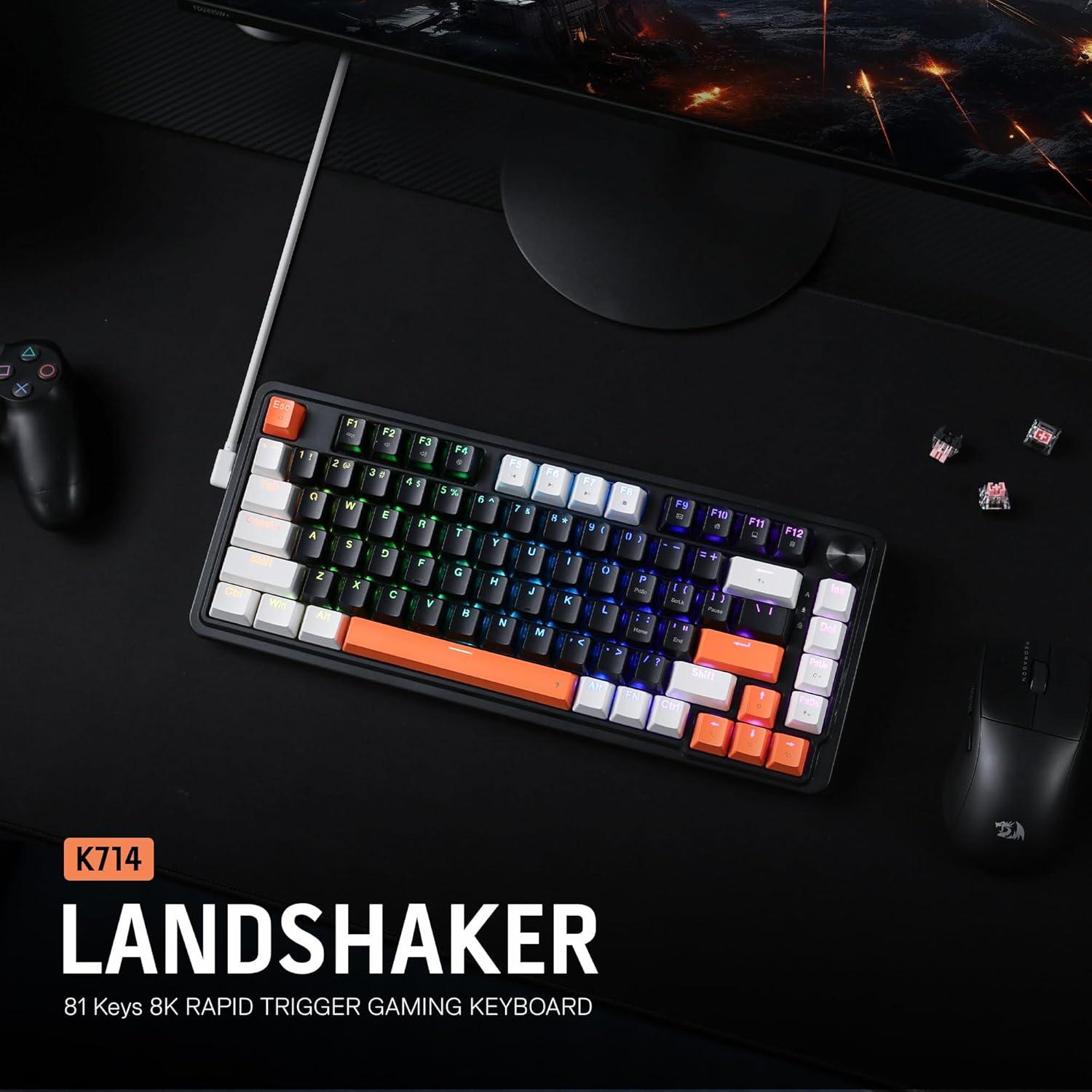 imageRedragon K673 MAX 75 Wireless Gasket RGB Gaming Keyboard 3Modes 81 Keys PBT Compact Mechanical Keyboard wHotSwap Socket Dedicated Knob Control ampamp 5Layer Noise Dampening Custom Linear SwitchBlack Tangerine HE Version