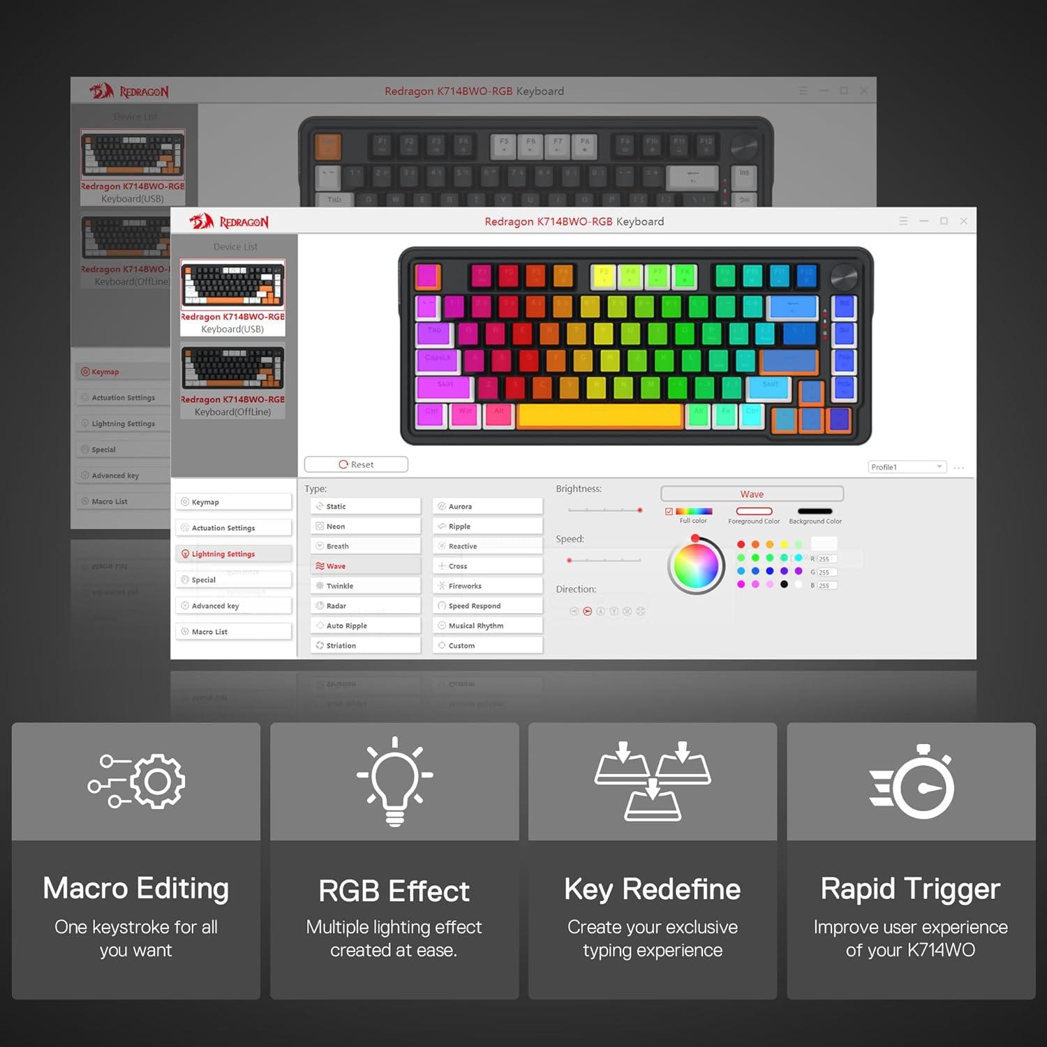 3-Mode Connection – Geared with Redragon advanced tri-mode connection technology, USB-C wired, BT 3.0/5.0 & 2.4Ghz wireless modes which make the user experience upgraded to another level in all fields.
