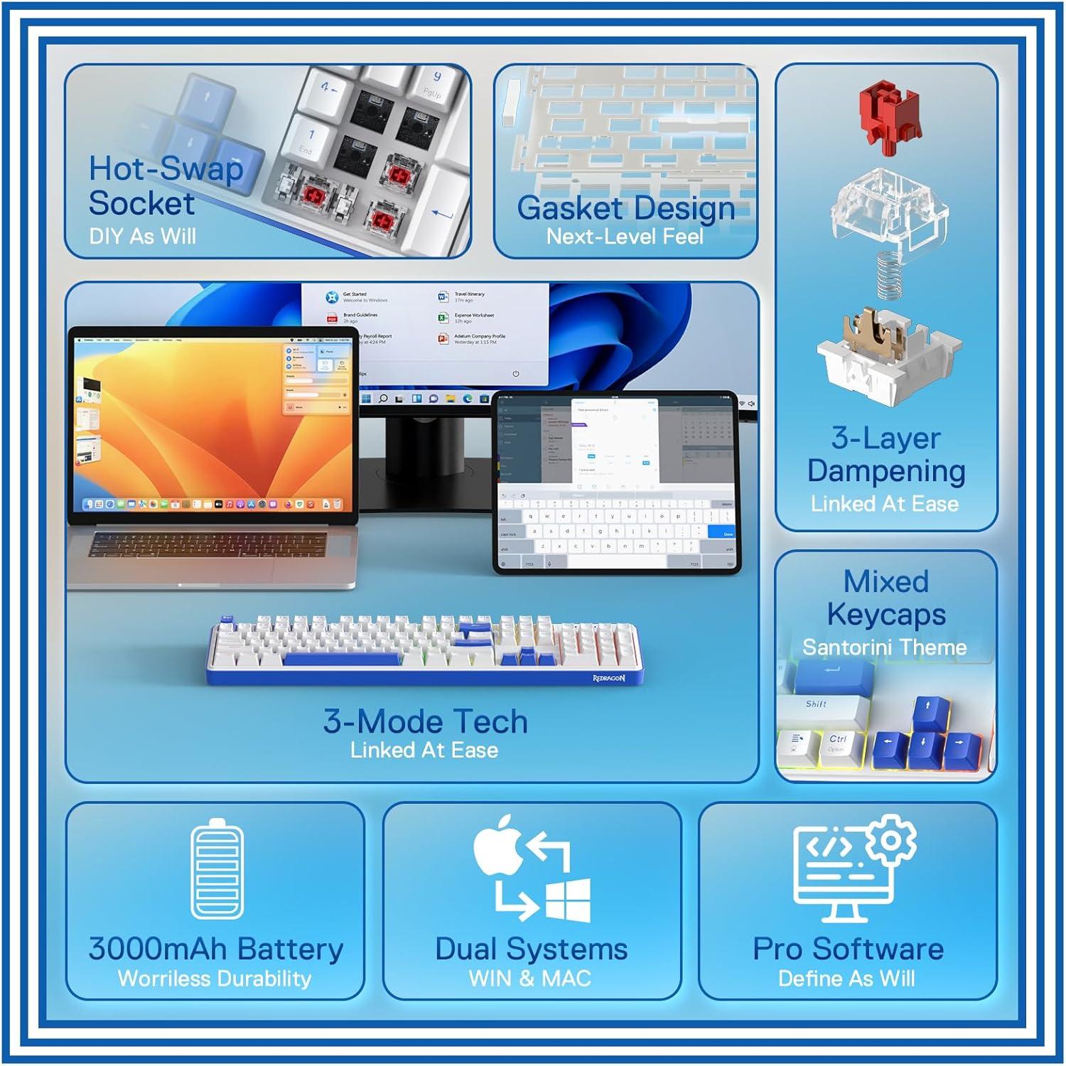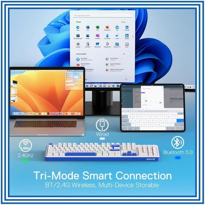 3-Mode Connection – Geared with Redragon advanced tri-mode connection technology, USB-C wired, BT 3.0/5.0 & 2.4Ghz wireless modes which make the user experience upgraded to another level in all fields.