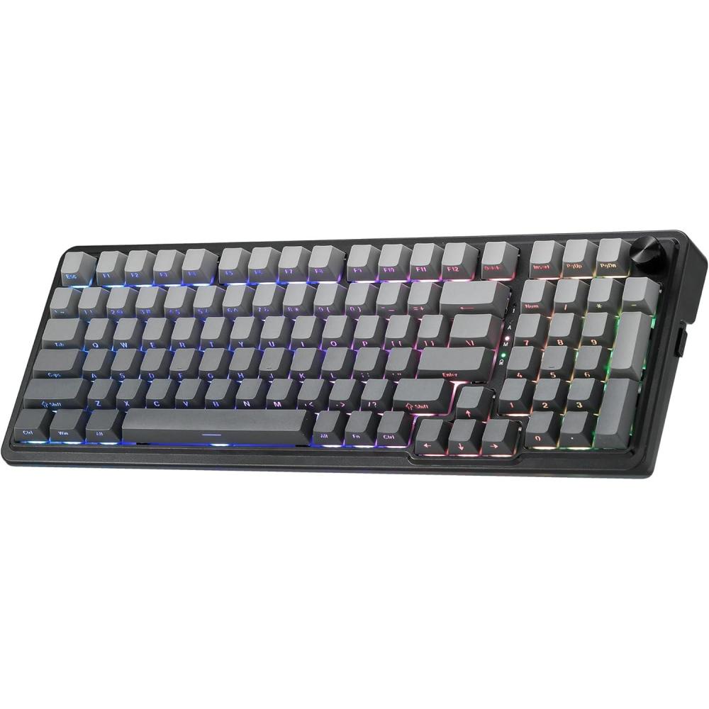 Redragon K686 PRO 98 Keys Wireless Gasket RGB Gaming Keyboard, 3-Mode PBT Mechanical Keyboard w/Hot-Swap Socket, Dedicated Knob Control & 5-Layer Noise Dampening, Custom Linear Switch(Concrete Jungle)