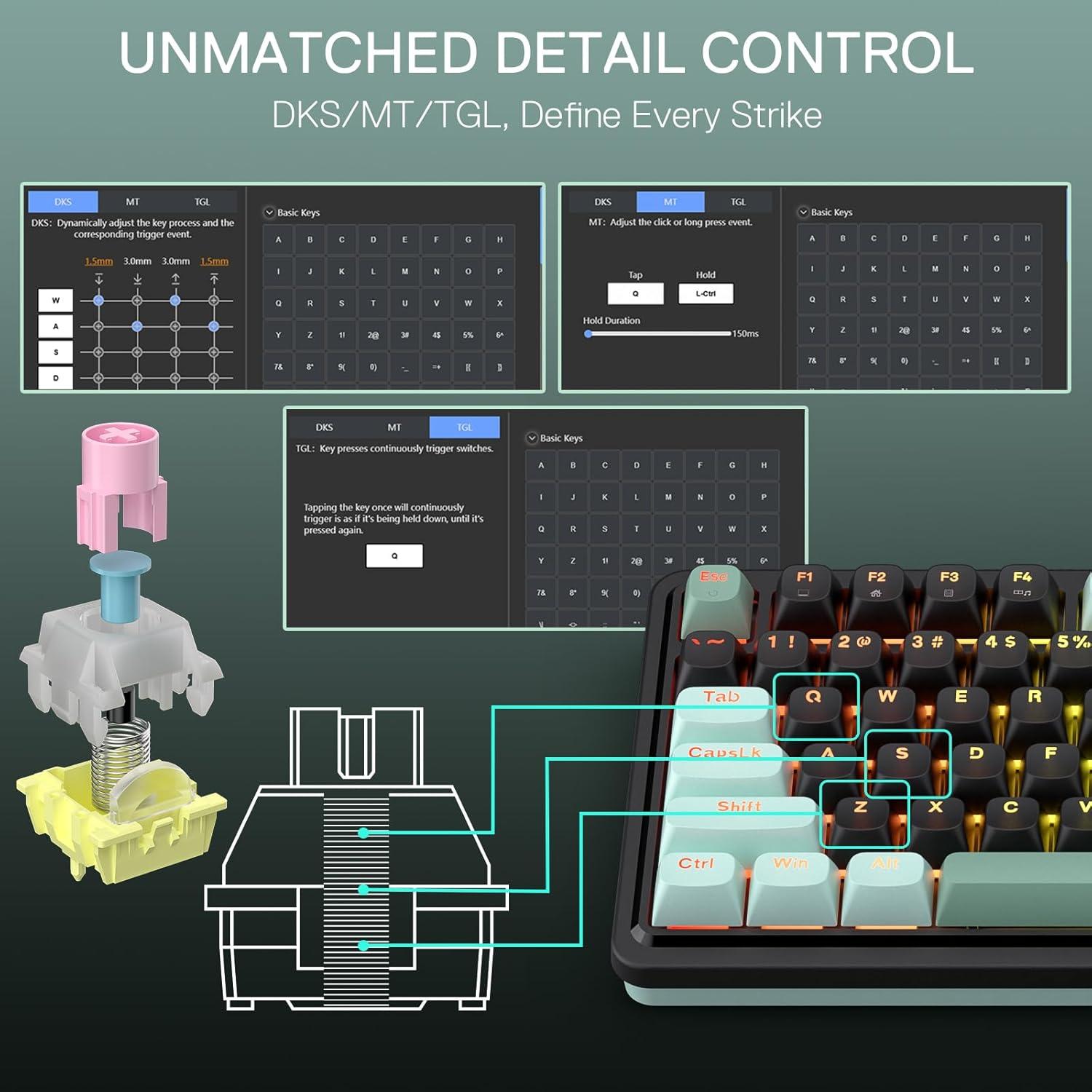 ONE-Knob Control – Armed with a convenient easy access control knob, the keyboard backlight brightness and media (volume, play/pause, switch) are all in control with no hassle. Plus functionary with no extra keys or space to waste.