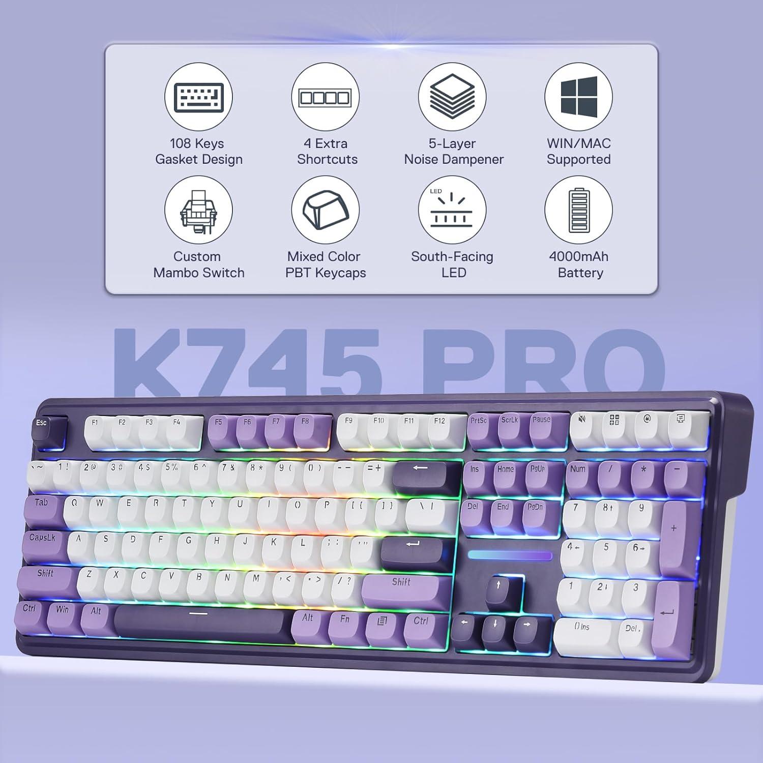 Full Size 108 Keys Layout – 104 keys anti-ghosting allows you to simultaneously click multiple keys. While adding the extra 4 shortcut keys, featuring more convenience and practicality.