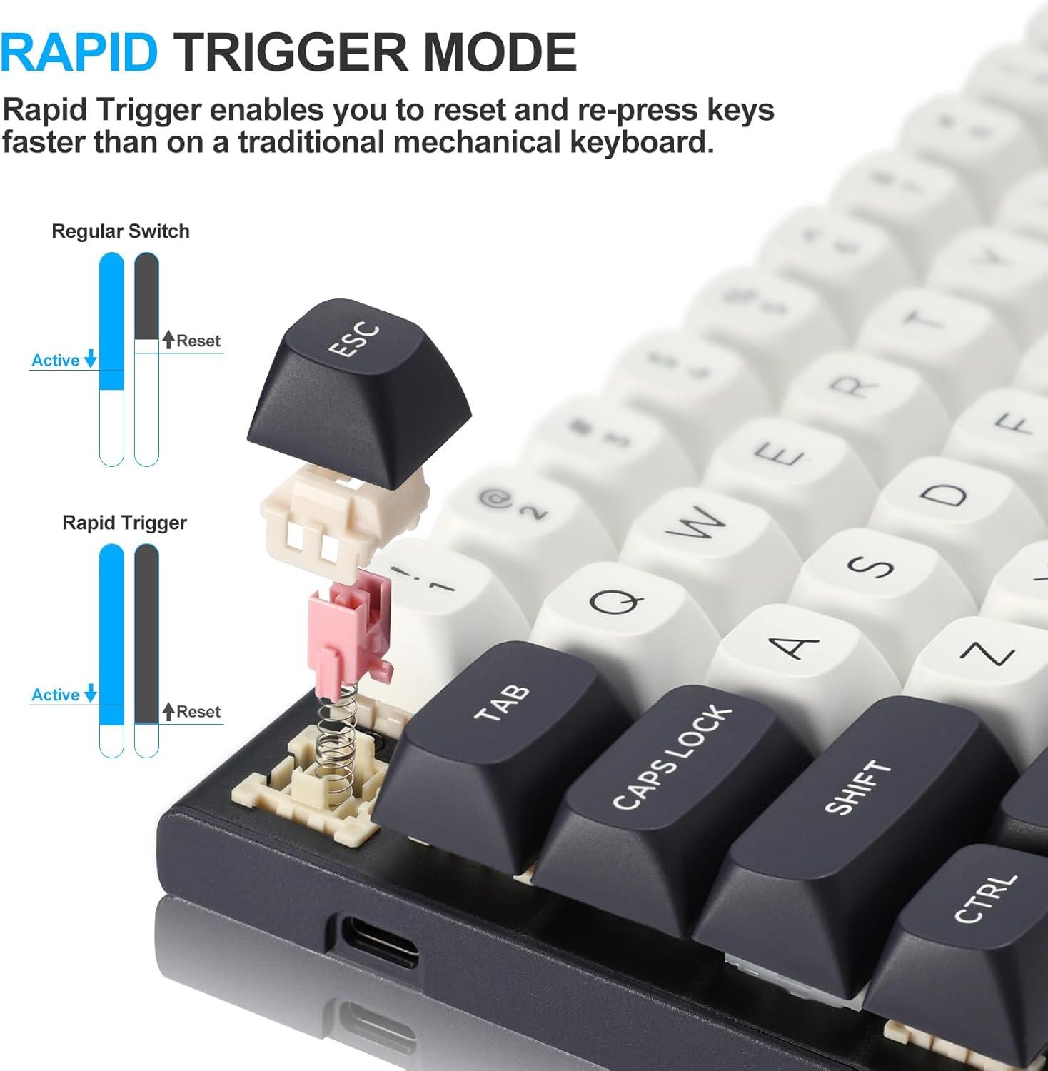 Top Quality – Ergonomic design, Made of solid Metal Panel and ABS, 100 million keystroke Magnetic switches, 1.6m/62in detachable USB-A to USB-C cable, Pro software, all keys no conflict