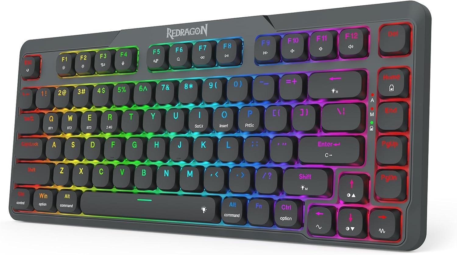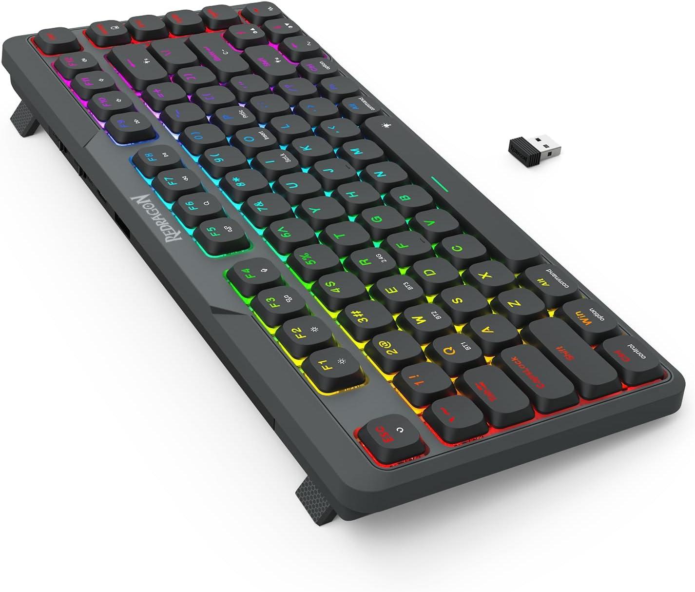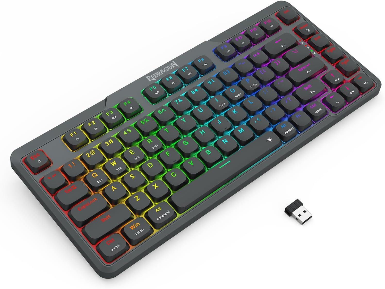 Redragon K706 PRO 75% Wireless Gasket RGB Gaming Keyboard, 3-Modes 82 Keys Compact Mechanical Keyboard w/ Ultra Slim Board, Low-Profile Linear Red Switch and Dual WIN/MAC System