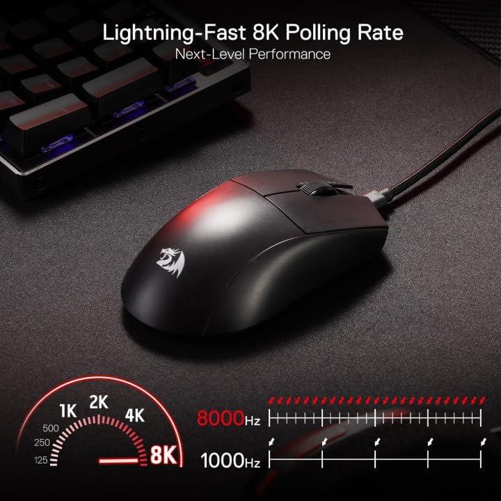 8000Hz Report Rate – Armed with Redragon's first 8K transmission tech and Nordic flagship chip, unleashing the precisest tracking, the fastest moving and the lowest consumption performance, the mighty beast is on the loose.