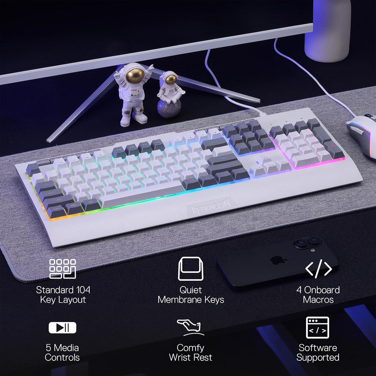 Redragon S142 Wireless Gaming Keyboard & Mouse Combo, 98 Keys K515 PRO RGB Membrane Keyboard & 4800 DPI Wireless 2.4Ghz Gaming Mouse Bundle, Convenient Shared Dongle(S151 WT)