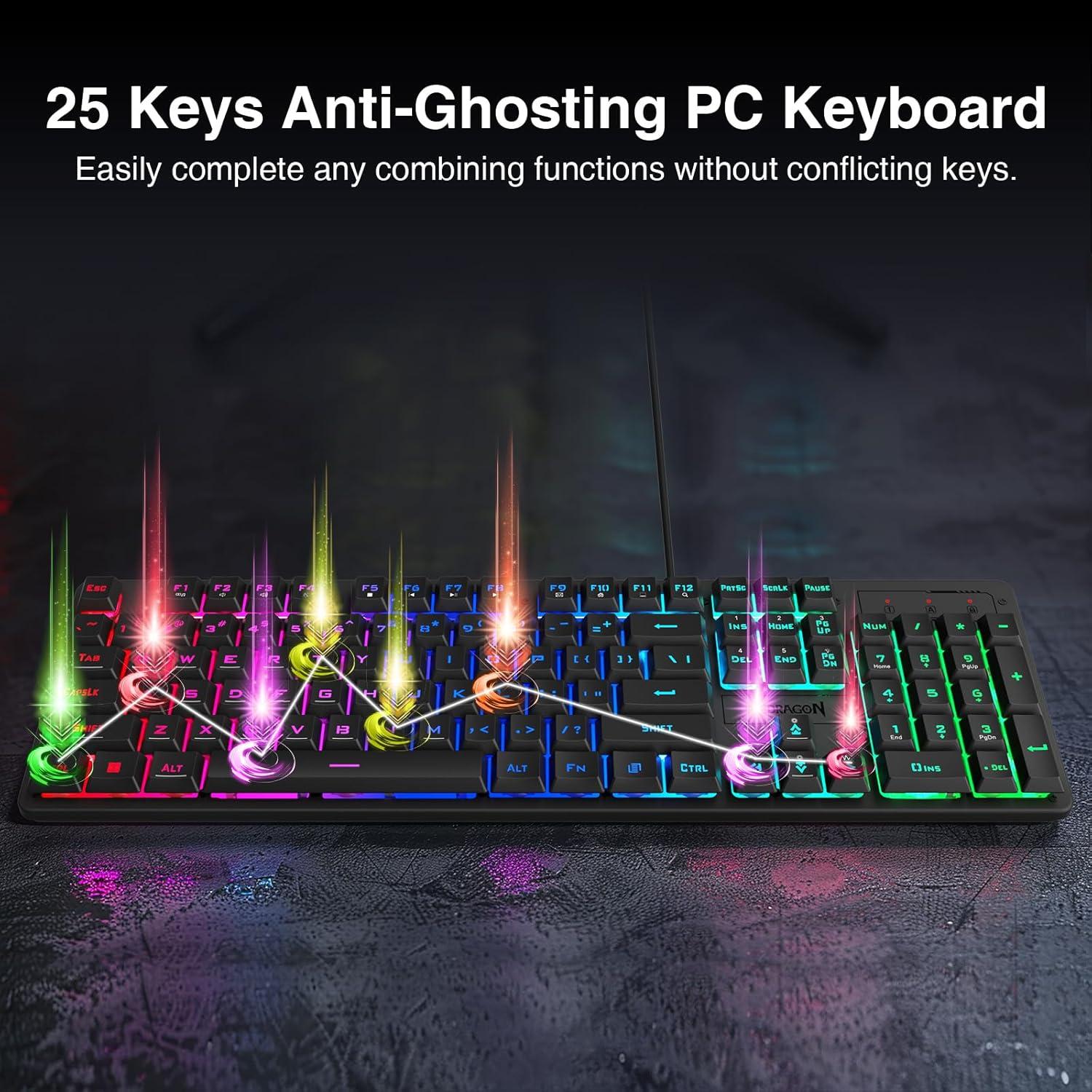 【25 Keys Anti-ghosting】Anti-ghosting ensures every button can be triggered. This allows you to accurately trigger key combinations in the game, and each skill can be accurately released to increase your winning rate. Upgrade Redragon S107-BA combo will be your perfect partner