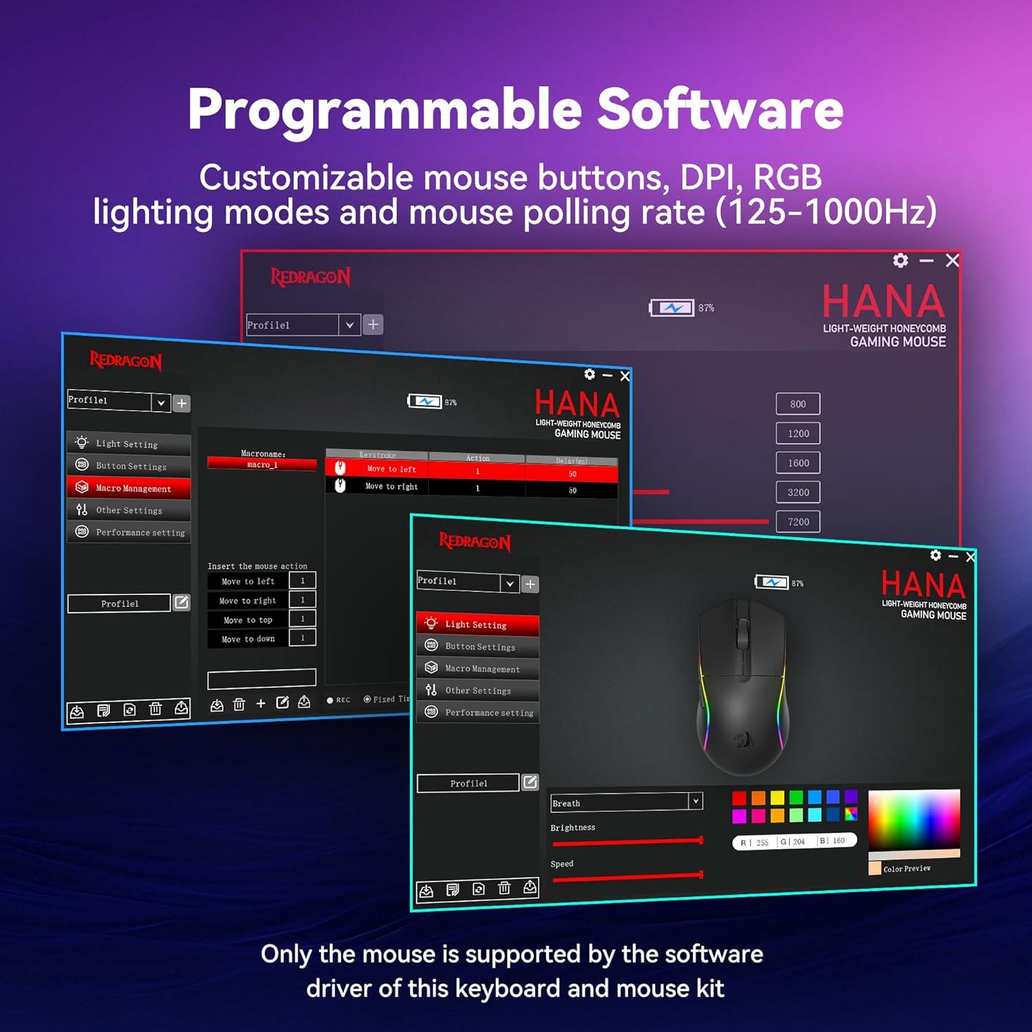 【Professional Customised Software Support】S107BA Gaming Mouse is equipped with professional Redragon customization software support, where you can freely adjust the DPI, Report rate, and RGB lighting effects and customize the 7 buttons to meet your customization needs (Mouse support software driver only) (redragon.com)