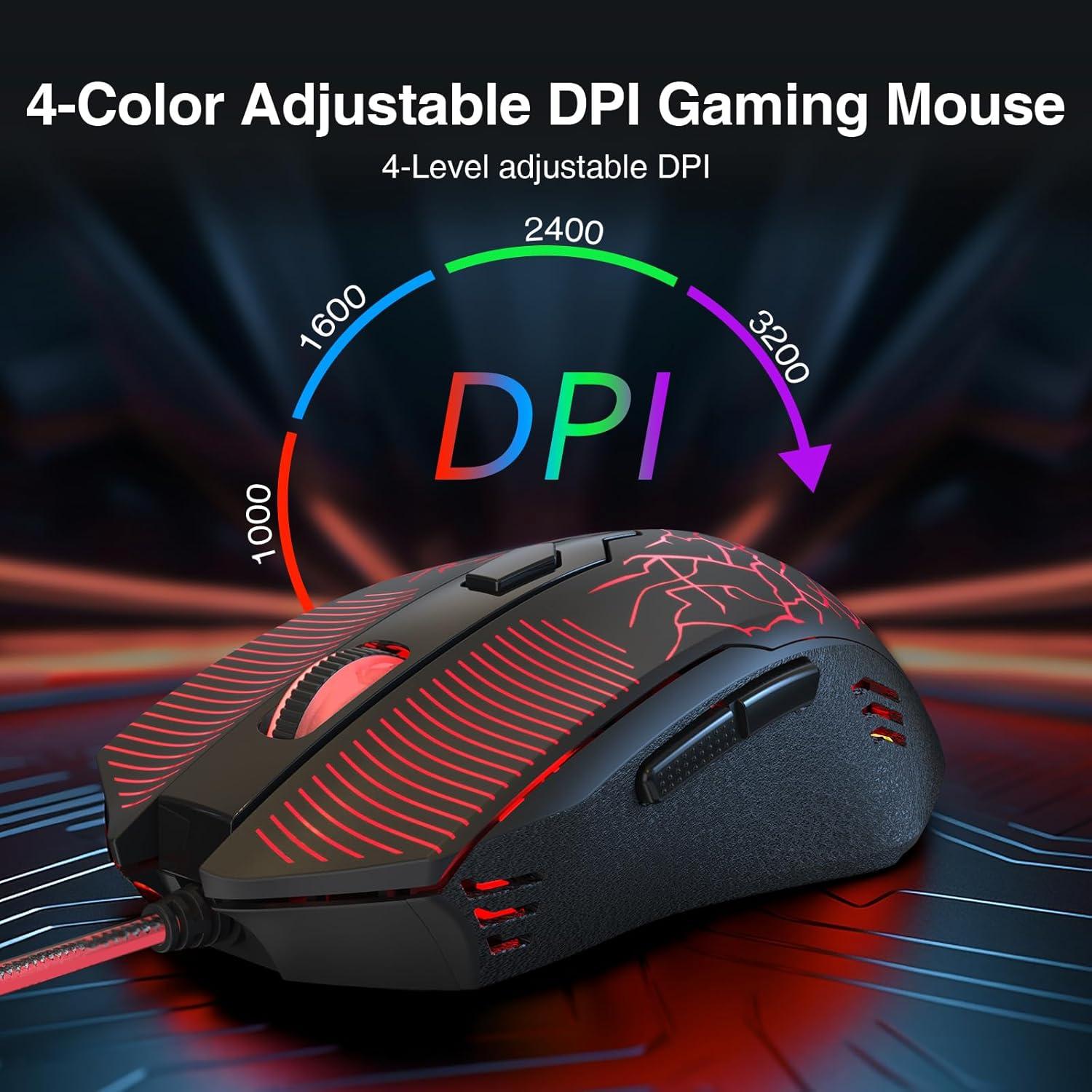 【DPI Adjustable Gaming Mouse】You can adjust the DPI up to 5000 via the DPI button, or adjust it up to 10000 via the software driver to easily meet your different needs in gaming or work. (The software also supports adjusting the mouse polling rate up to 1000Hz)