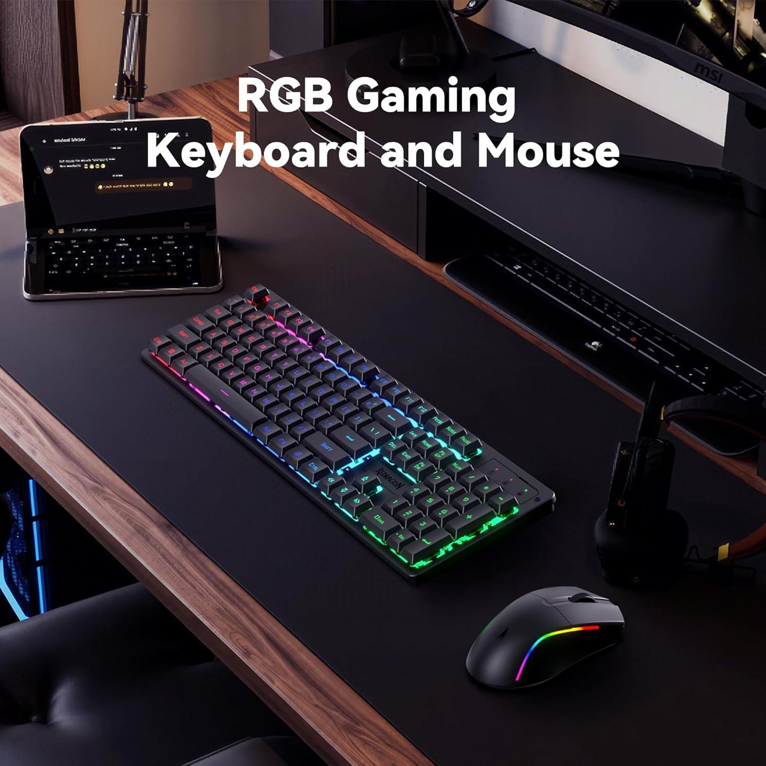 【RGB Gaming Keyboard and Mouse】The gaming keyboard has 6 RGB lighting modes to choose from & the gaming mouse has 8 lighting effects to switch between, and the keyboard and mouse set can be adjusted for speed and brightness to suit your preference. Whether it's a single light, changing light effects or no light at all, the Redragon gaming keyboard and mouse will meet your needs!