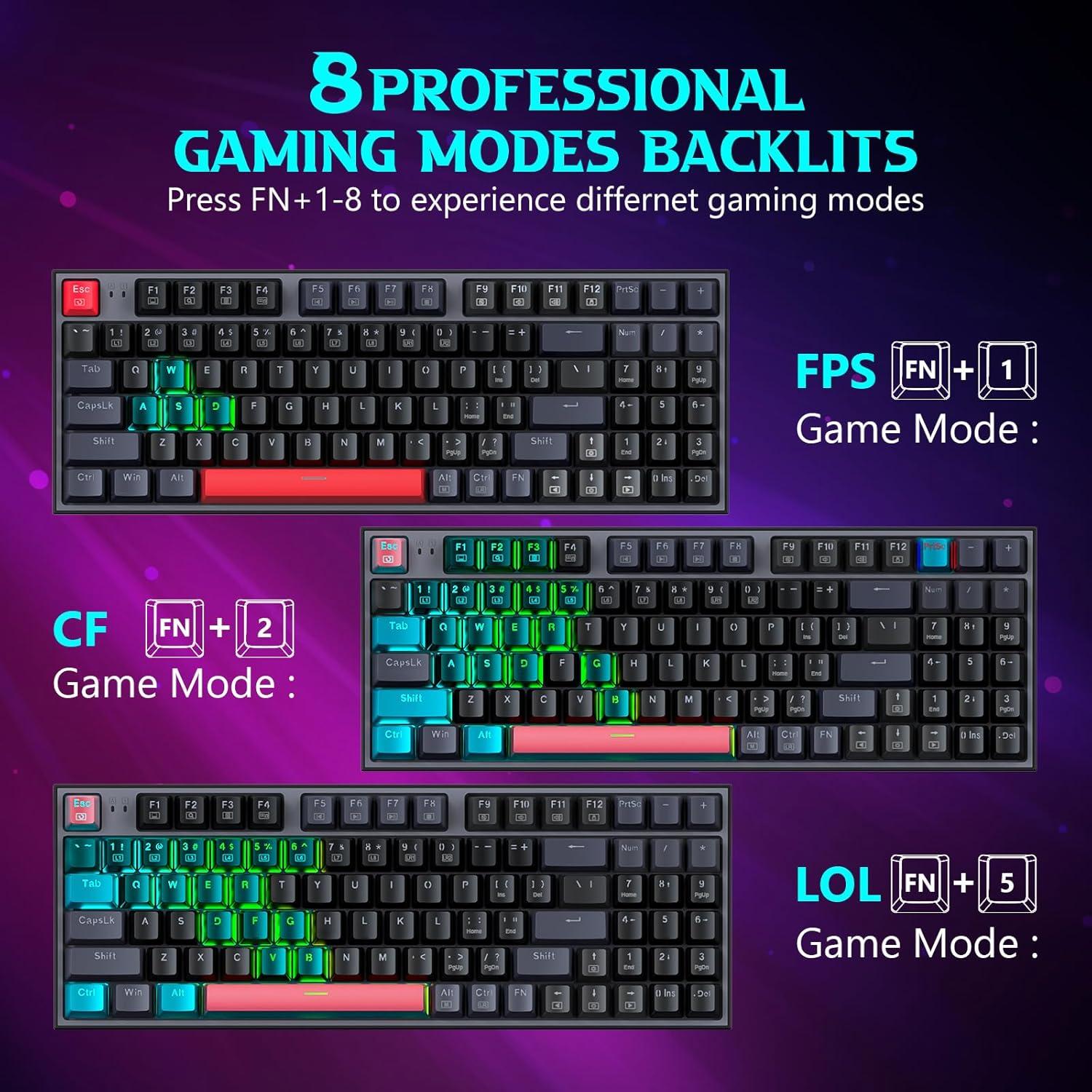 Innovative 90% Compact Layout- Adopts 94-key layout, this mechanical keyboard keeps essential numeric pad, arrow keys, del/+/-…, compact and save more space compared to standard size 87,104 keyboard. Dedicate for games and efficient working.