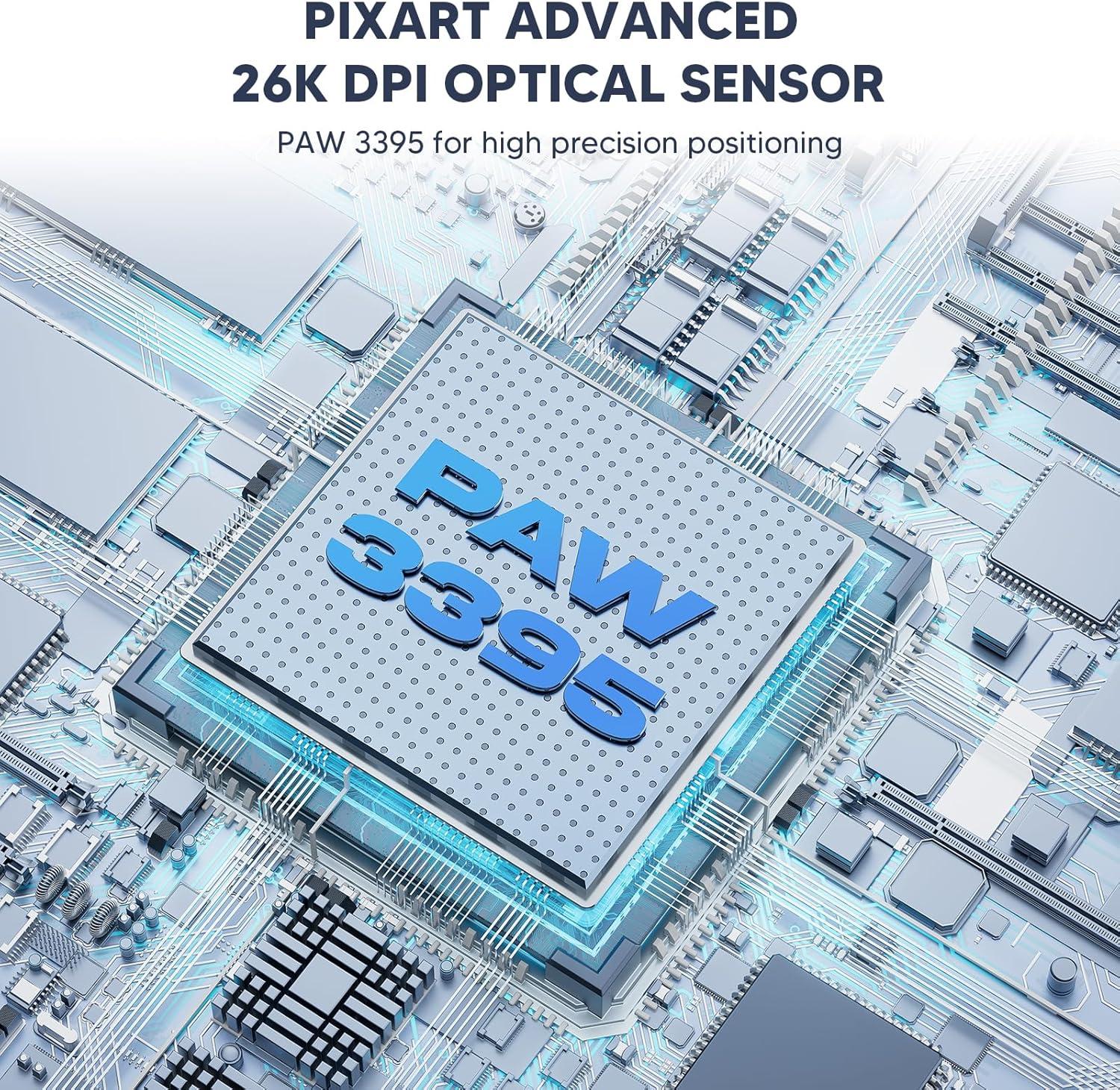 UP to 12000DPI & 5 DPI Levels – This wireless mouse geared with 5 redefinable DPI levels (default as: 400/800/1600/2400/3200), easy to switch between different game needs. Dedicated demand of DPI options between 100-12000 is also available to be processed by software.