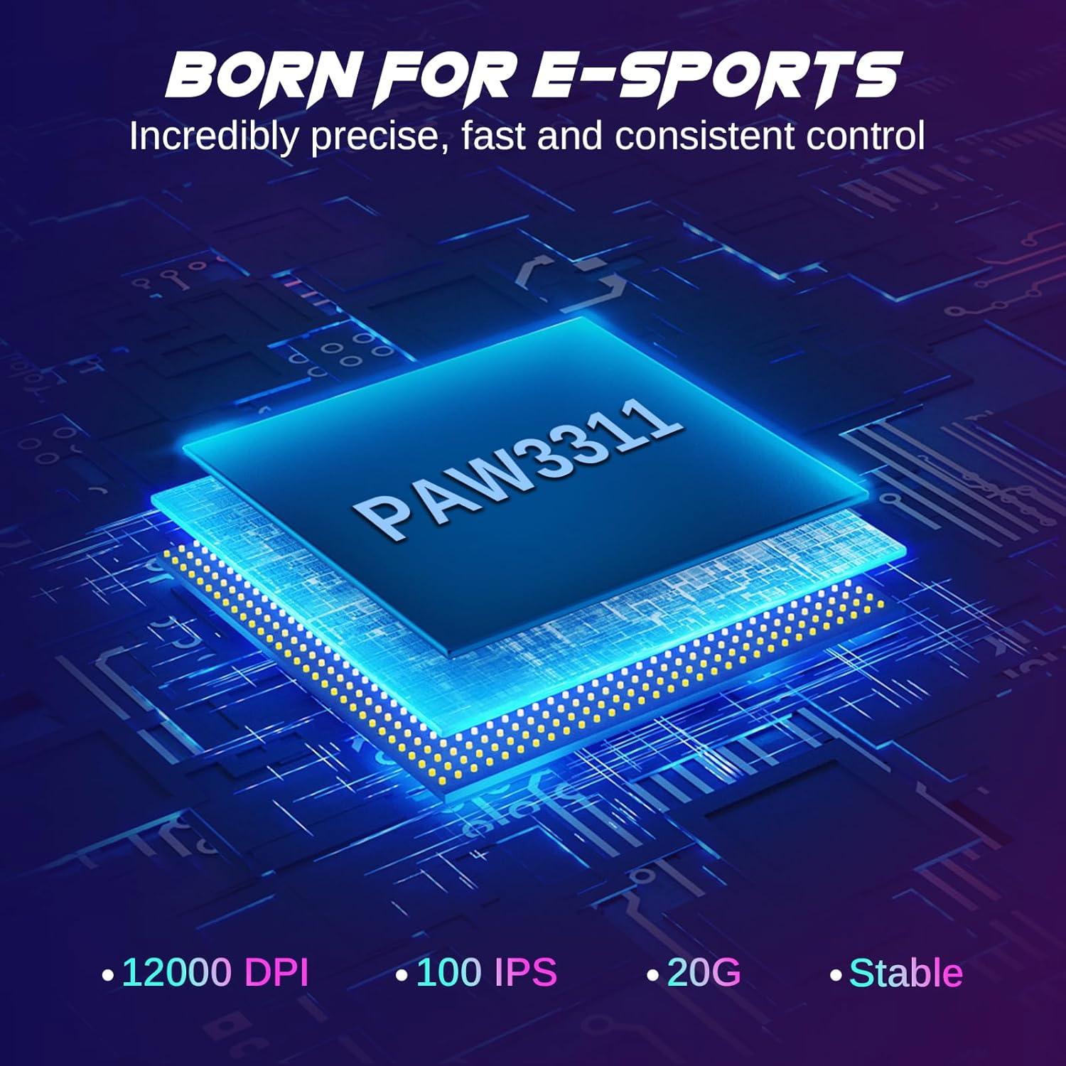 【E-Sports Sensor】Incredibly precise, fast and consistent control with PAW3311 Sensor, this gaming mouse features with high precision sensor up to 12000 DPI, offers on-the-fly sensitivity adjustment through dedicated DPI buttons (reprogrammable) for gaming and creative work.