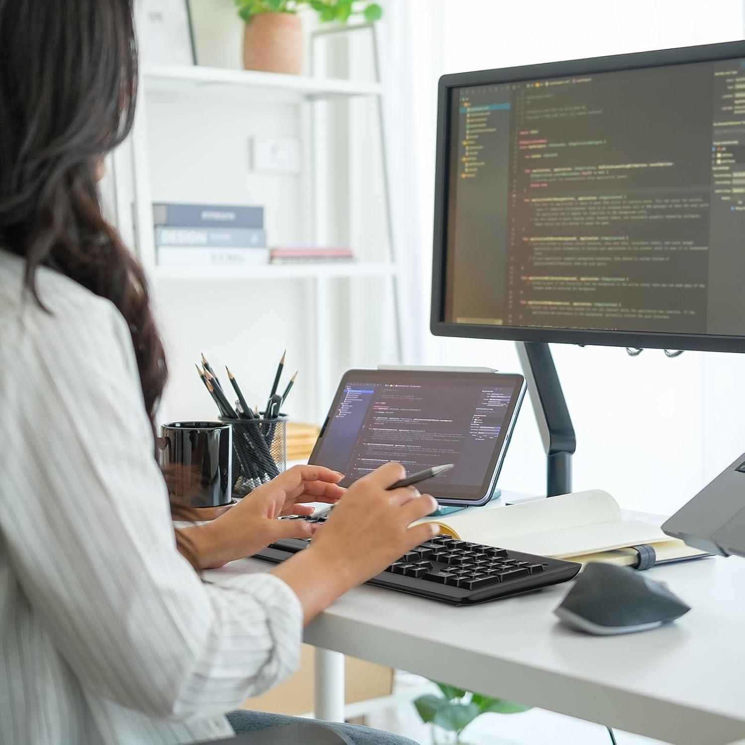 【Silent Keys】 With noise-canceling design, you don't need to worry about disturbing others around you whether you are working in a quiet office or late at night.